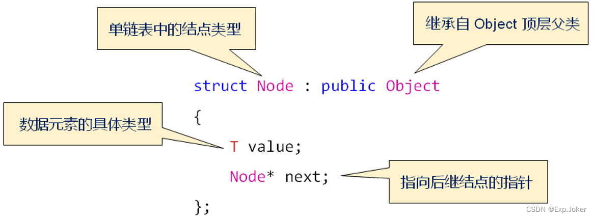 - 定义内部结点类型Node,用于描述数据域和指针域