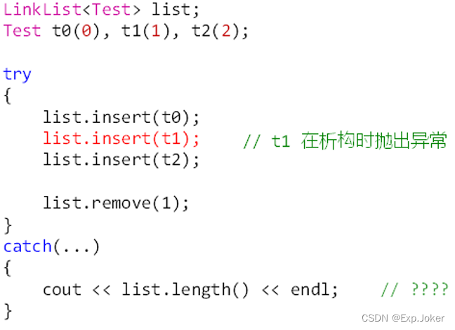 - 为了防止元素为类时,析构函数抛出异常,无法保证链表的安全性。