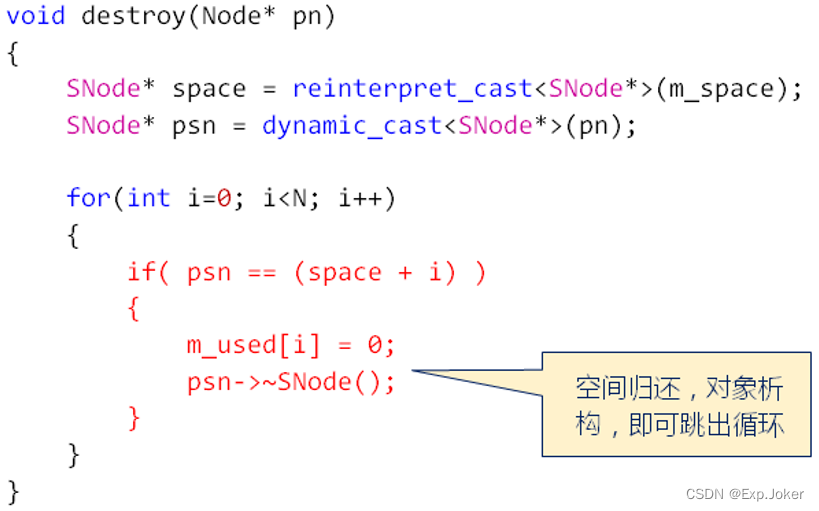 psn->~SNode(); // 调用析构函数,这里需要使用的是子类的析构函数,故需要对pn进行一个强制类型转换成子类对象