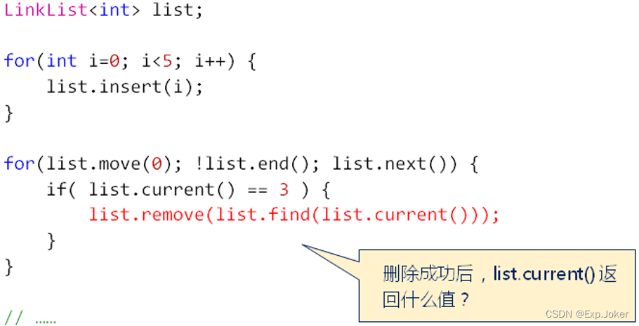 - 当删除某个结点之前,需判断游标是否也指向该结点。若是,则将游标指向下一个结点。