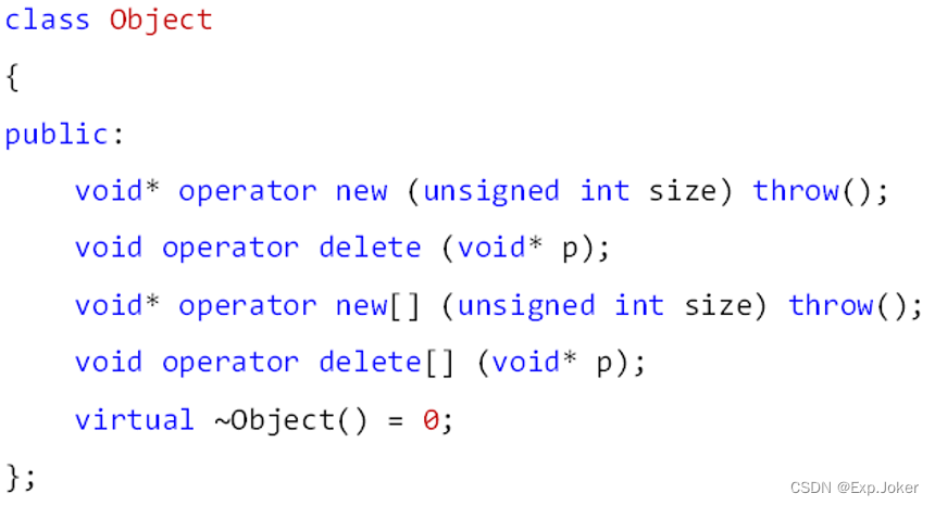 virtual ~Object() = 0; // 析构函数(纯虚函数 抽象类)
