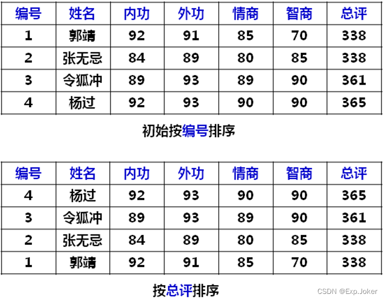 - 当关键字n-1相同时按关键字n进行排序