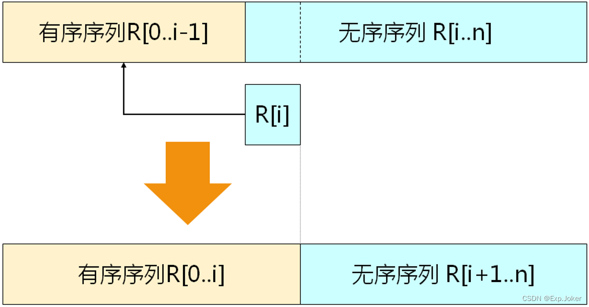 当插入第i(i≥ 1)个数据元素时,前面的V[0],V[1] ,V[i-1]已经排好序;这时,用Vi]的关键字与V[i-1] ,Vii-2],...,V[O]的关键字进行比较,