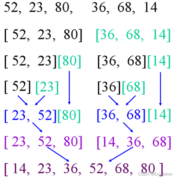 将两个或两个以上的有序序列合并成一个新的有序序列