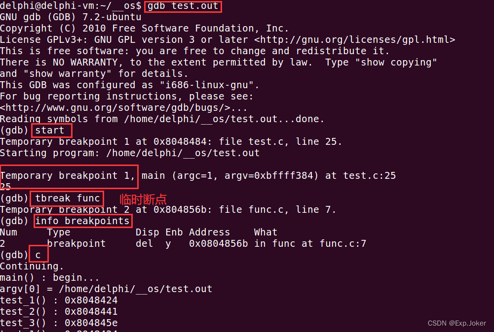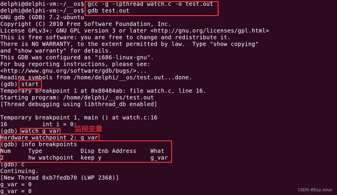 - GDB支持数据断点的设置(一种类型的硬件断点)