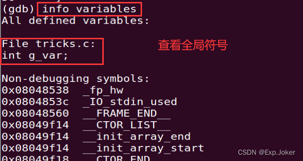 - GDB支持运行时对程序中的符号进行查看(whatis, ptype)