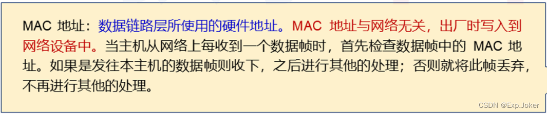 - MAC地址是数据链路层使用的地址(用于确定目标网络中接收数据的主机)
