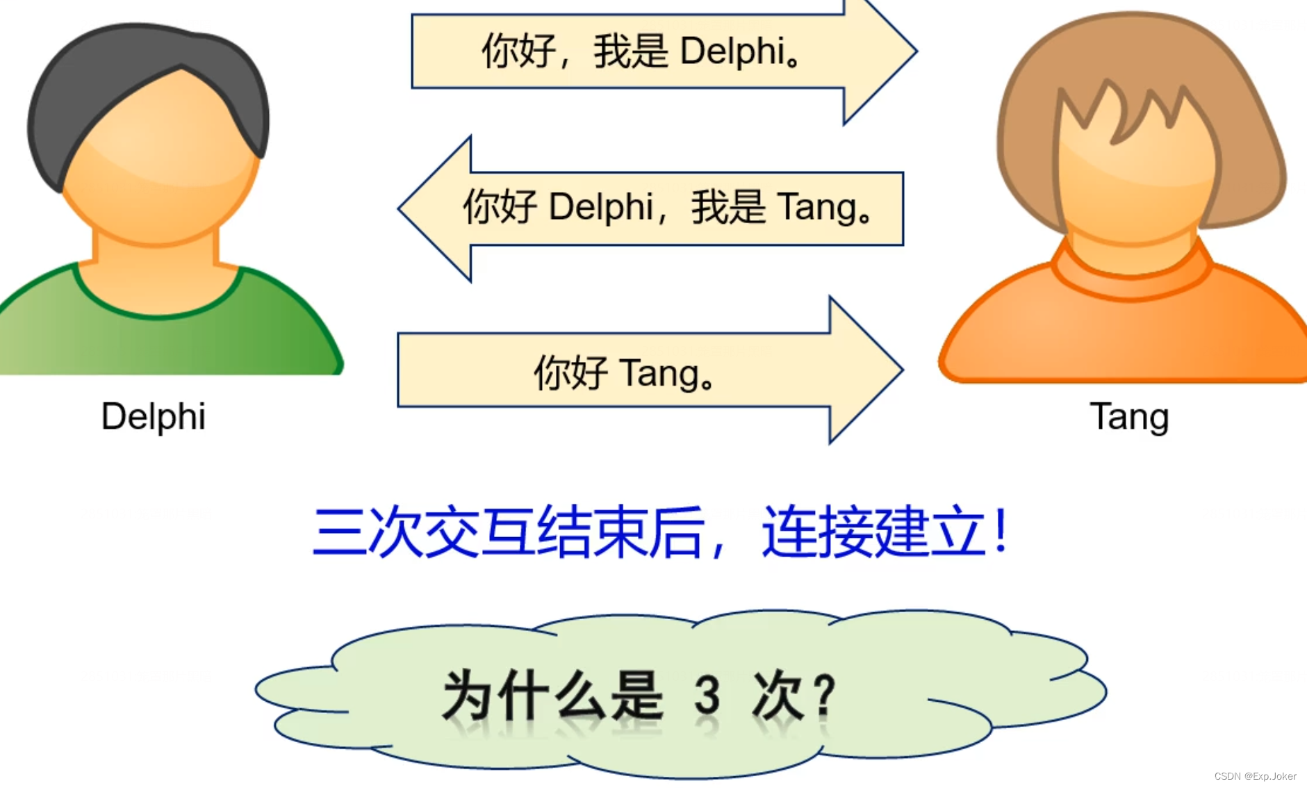 三次交互结束后,连接建立!为什么是3次? 相互发送消息,都获得了回应