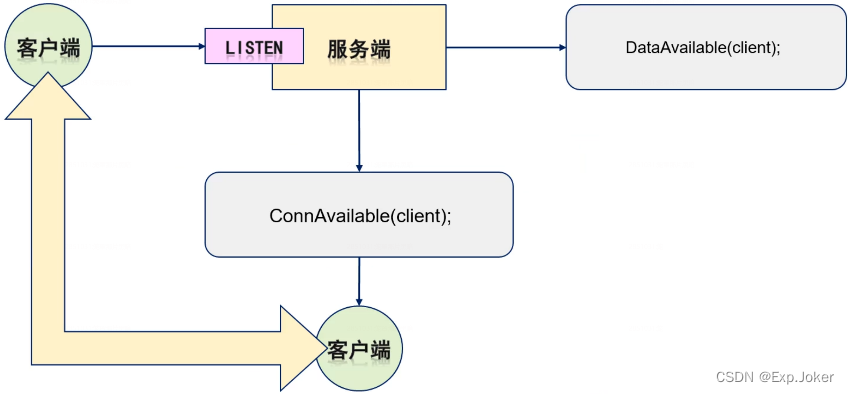 - 客户端连接服务端时触发,并创建TcpClient用于通信