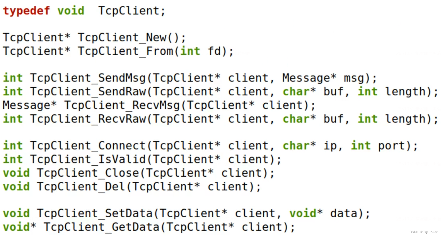 - 事件回调: void (*Listener)(TcpClient*client, int event);