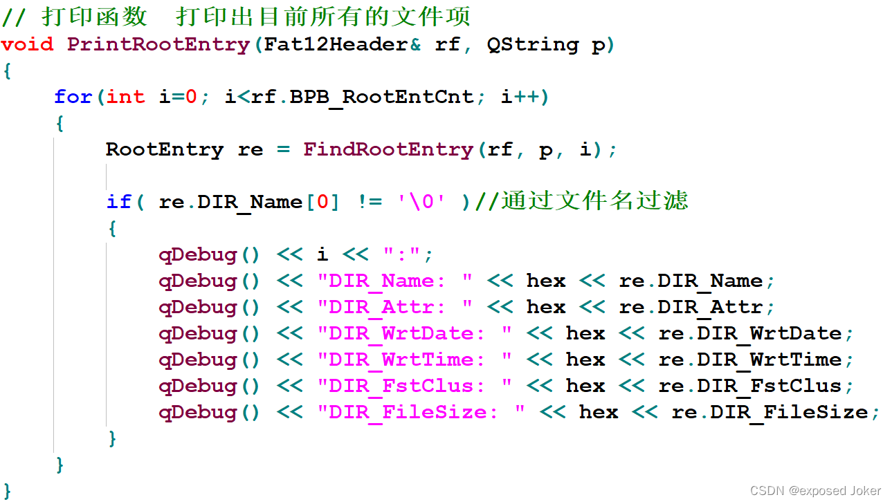 if( file.open(QIODevice::ReadOnly) && (0 <= i) && (i < rf.BPB_RootEntCnt) )// 只读的方式打开,根目录区中,BPB_RootEntCnt最多有多少个文件项