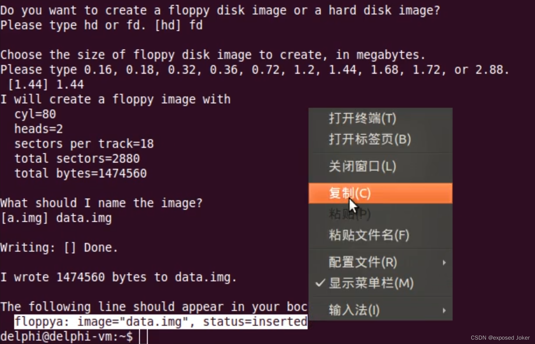 - 编写可执行程序(Loader)并将其拷贝到软盘中