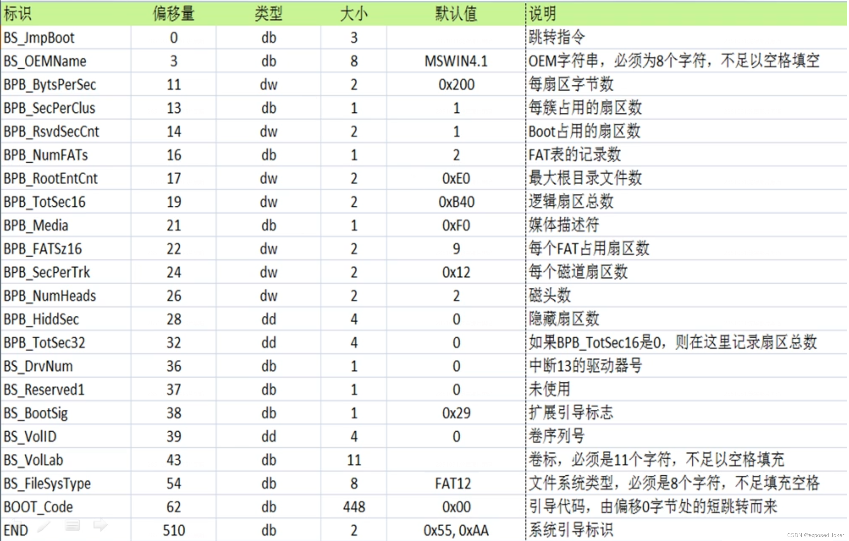 主引导区最后以0x55AA两个字节 作为结束,共占用一个扇区。