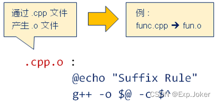 - 如: .cpp.o <--> %.o :%.cpp
