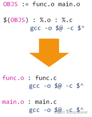 ② : %.c 将目标名换成.c