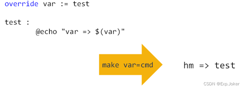 - 命令行变量默认覆盖makefile 中定义的变量
