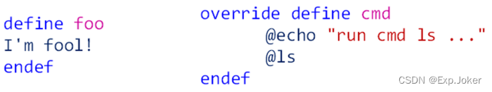 - 多行变量的定义从变量名开始到endef结束
