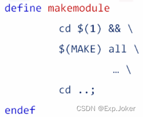 - makefile 中的自定义函数是代码复用的一种方式