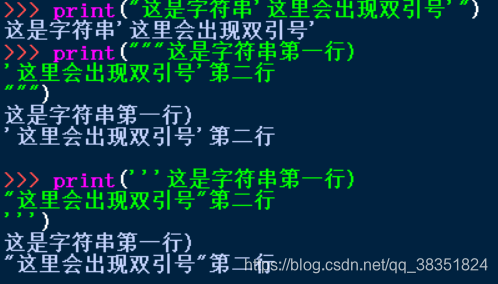 多行字符串可以由一对三单引号(‘‘‘ ’’’)或三双引号(“““ ”””)作为边界来表示,