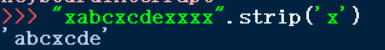 ⑥ str.strip(chars)从字符串str中去掉在其最左侧和右侧chars中列出的字符。chars是个字符串,其中出现的每一个字符都会被去掉。