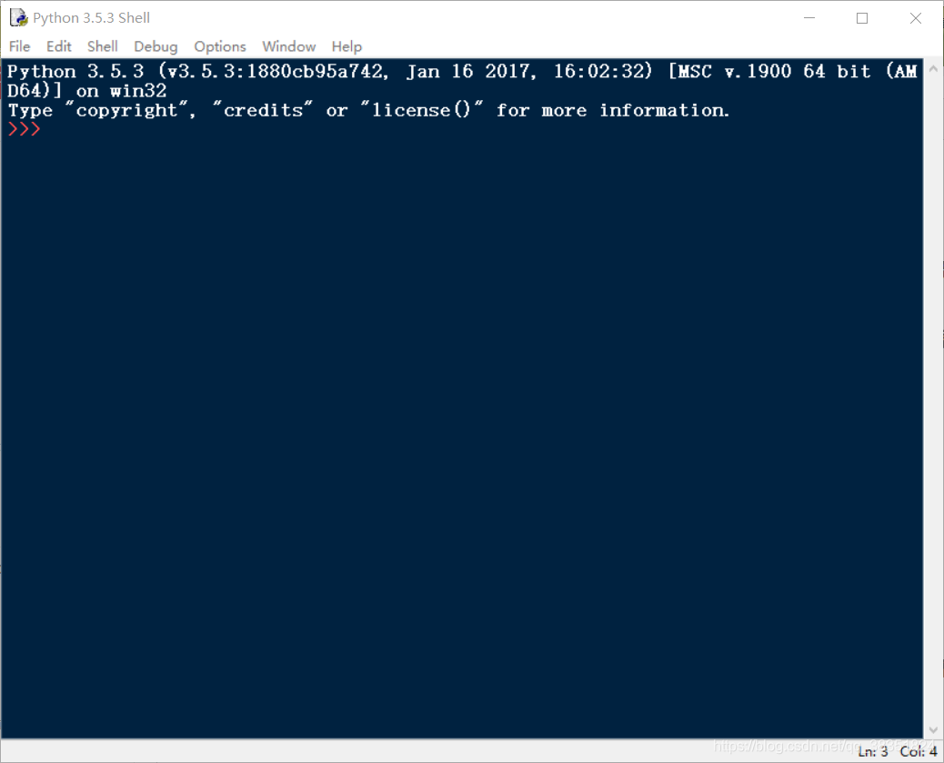 对于初学者,建议使用python安装包自带的IDLE进行代码开发以windows为例,在“开始”菜单中搜索关键词“IDLE”找到快捷方式,启动后限时一个交互式python运行环境,如下图: