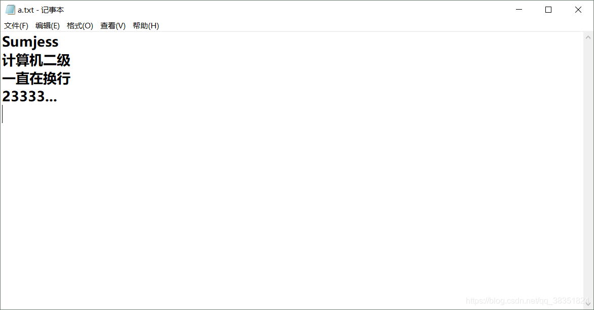 q=['Sumjess\n','计算机二级\n','一直在换行\n','55555...\n']