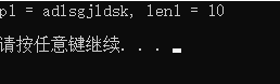 printf("p1 = %s, len1 = %d\n", p1, len1);