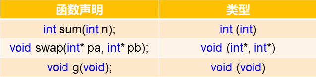 函数拥有类型,函数类型由返回类型和参数类型列表组成