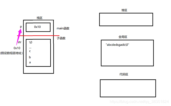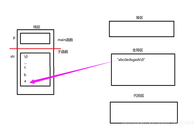 char str[] = "abcdedsgads"; //str在栈区,字符常量在全局区