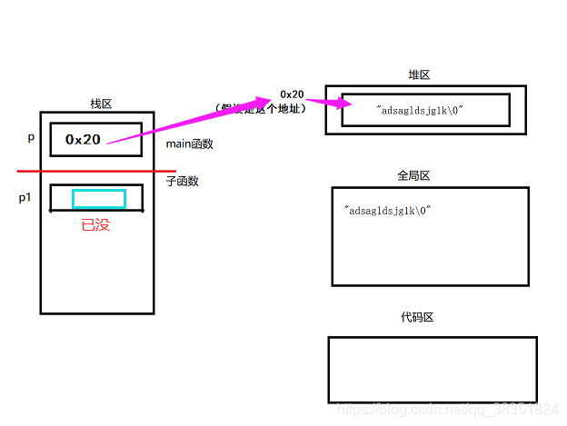 ③ 程序执行到 getStr1() 由于个人原因在全局区中应该为“abcdefg1\0”