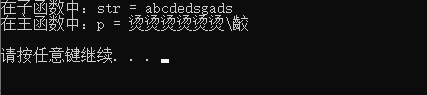 printf("在子函数中:str = %s\n", str);