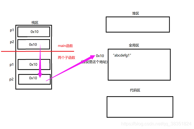 ⑤ 程序执行到 p2 = getStr2(); 由于个人原因在全局区中应该为“abcdefg1\0”