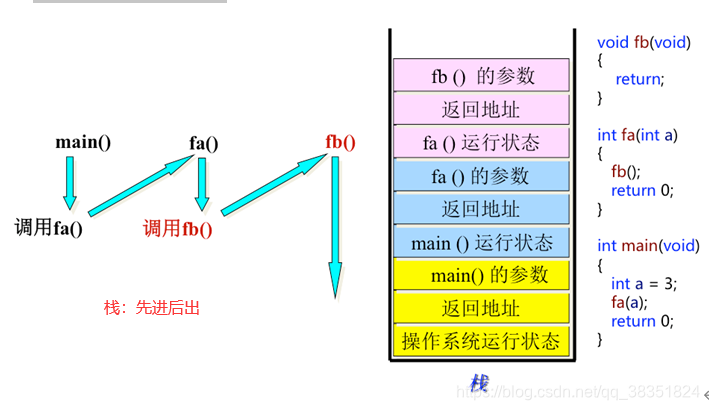 1.3.2 栈区(栈区(stack) :① 由编译器自动分配释放,存放函数的参数值,局部变量的值等。② 函数运行时分配,函数结束时释放。由编译器自动分配释放 ,存放为运行函数而分配的局部变量、函数参数、返回数据、返回地址等。)