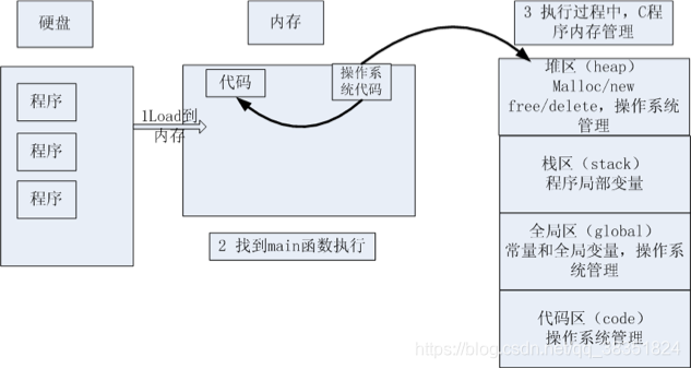 1.3.3 堆区(heap) : 一般由程序员分配释放(动态内存申请与释放),若程序员不释放,程序结束时可能由操作系统回收。