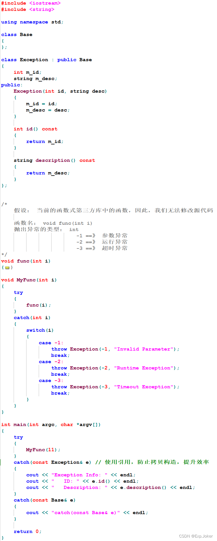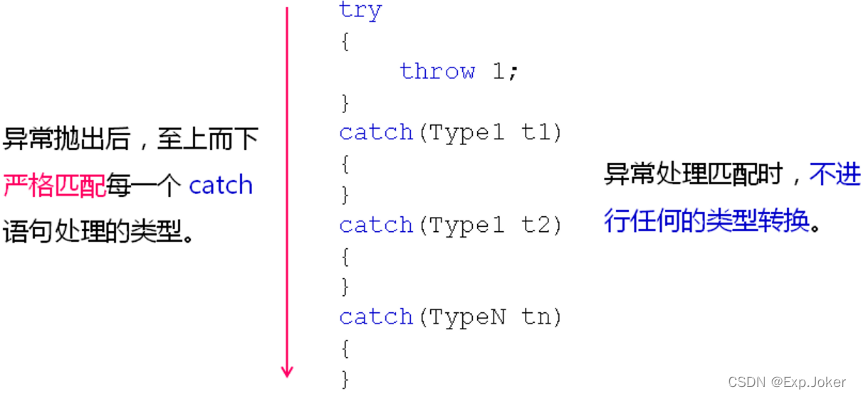 - 异常处理必须严格匹配,不进行任何的类型转换
