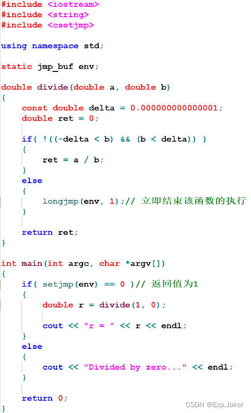 - 从jmp_buf结构体中恢复setjmp()保存的上下文