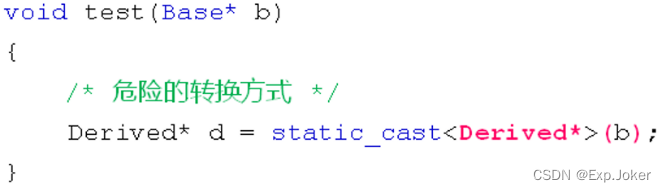 - 基类指针是否可以强制类型转换为子类指针取决于动态类型!