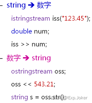 - 字符串流类(sstream)用于string的转换