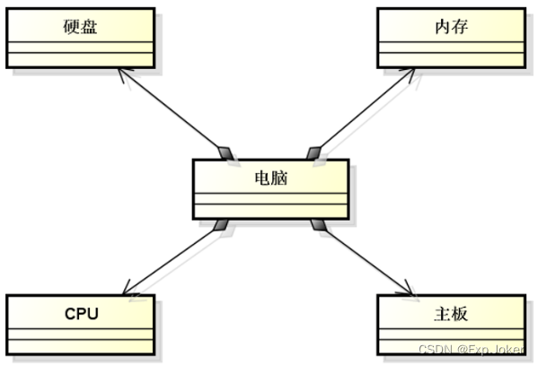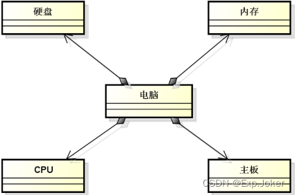 - 一些类的存在必须依赖于其它的类,这种关系叫组合