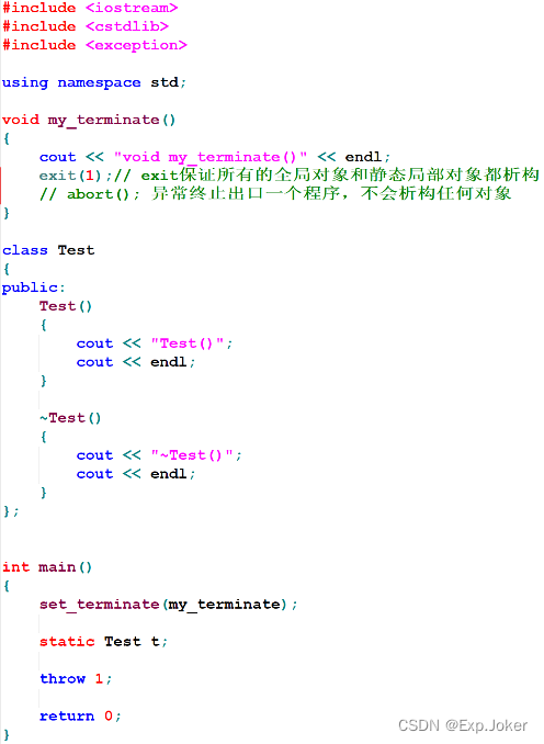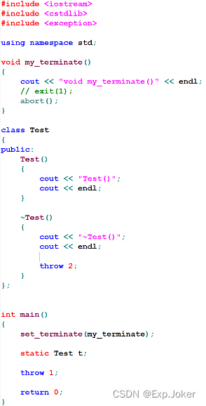 如果异常无法被处理,terminate()结束函数会被自动调用