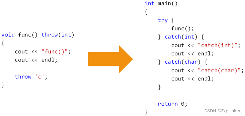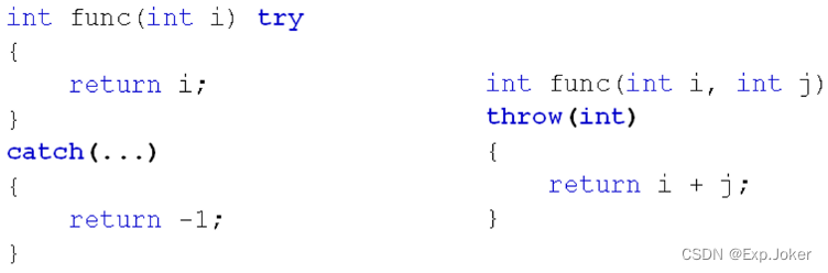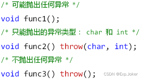 函数声明和定义时可以直接指定可能抛出的异常类型
