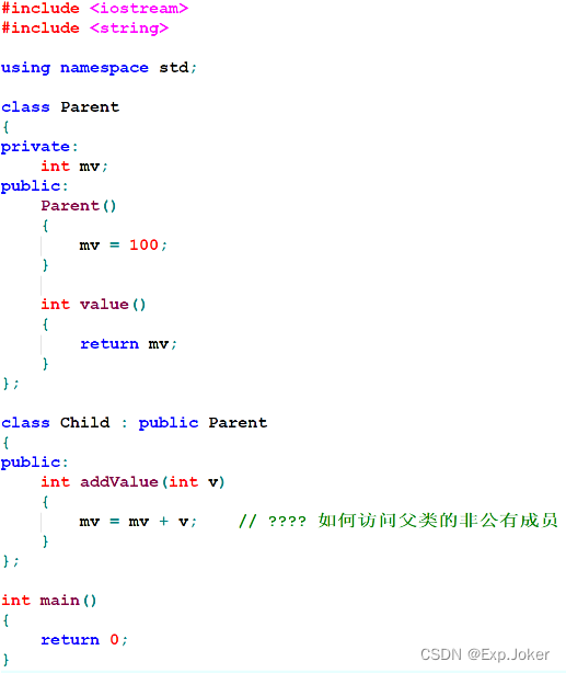 - 冒号( : )表示继承关系,Parent表示被继承的类,public的意义是什么?