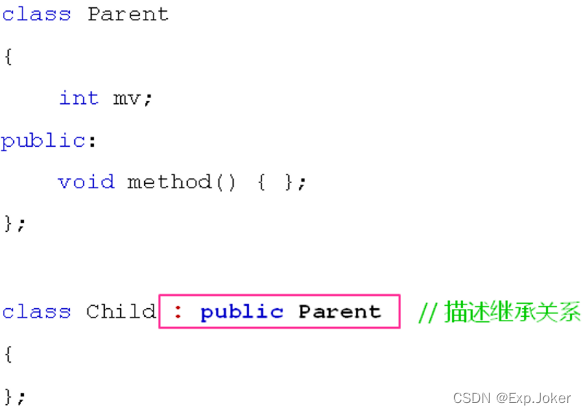 C++中通过下面的方式描述继承关系