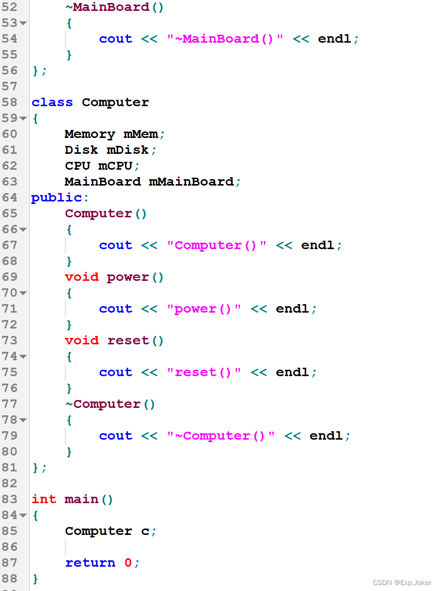 - 当前类的对象与成员对象的生命期相同