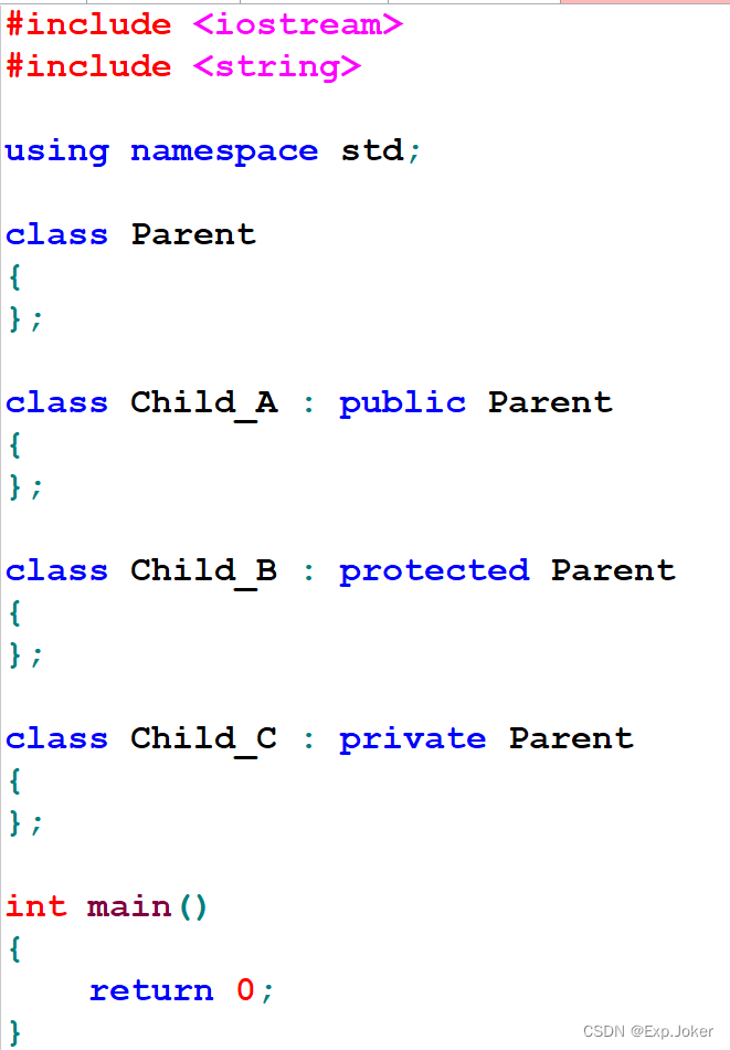 - C++中支持3种不同的继承方式