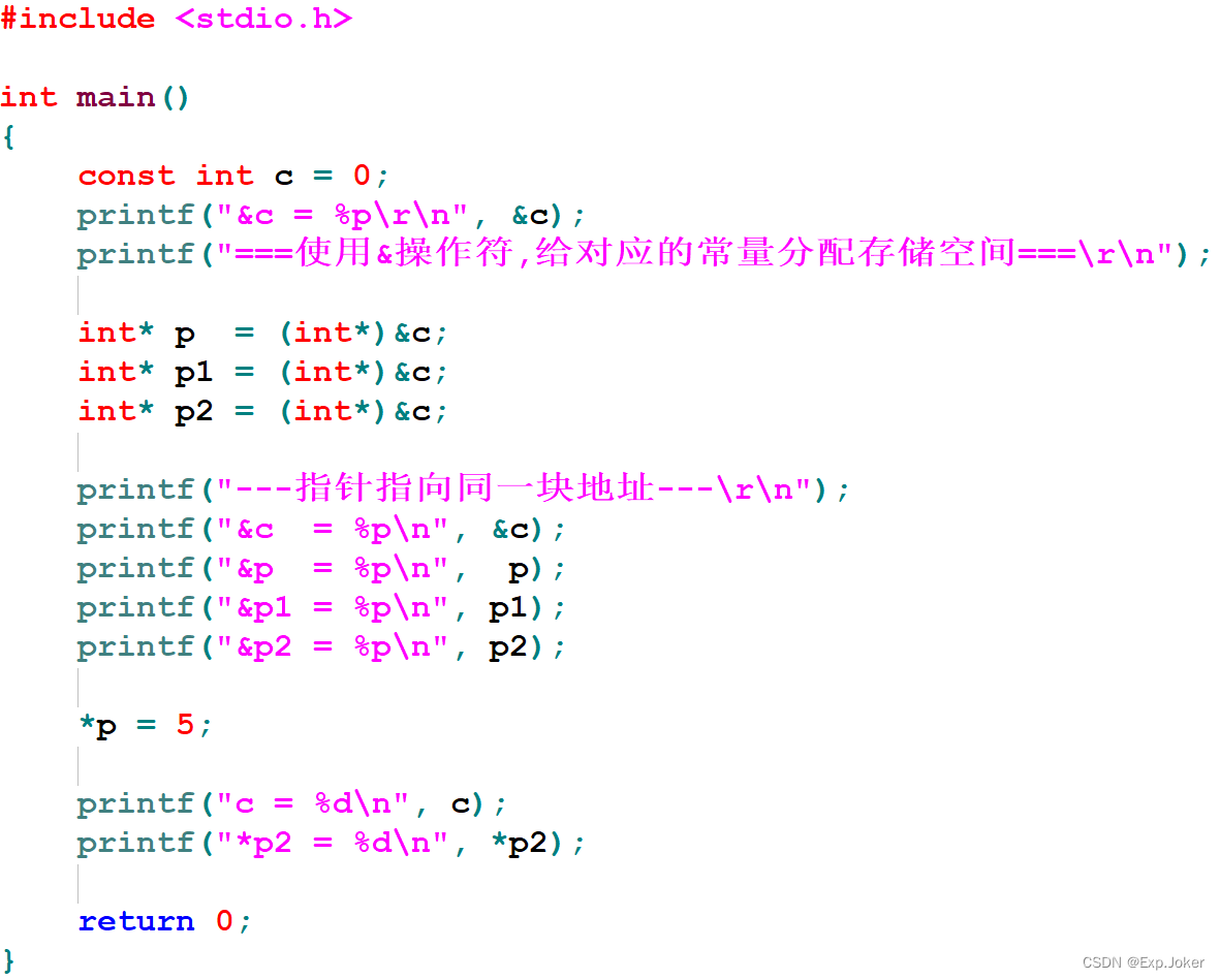 - 当使用&操作符对const常量取地址