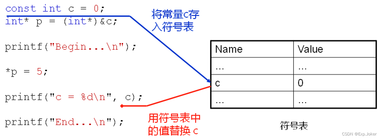 - 编译过程中若发现使用常量则直接以符号表中的值替换