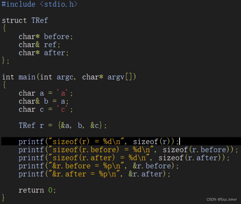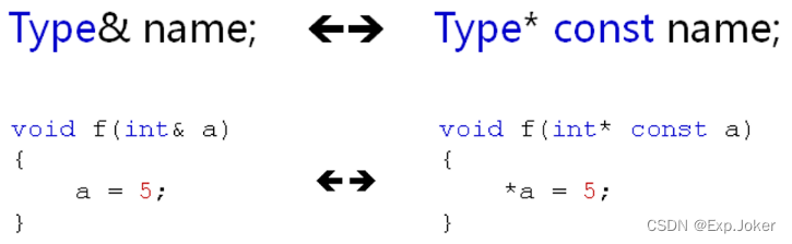 - C++编译器在编译过程中用指针常量作为引用的内部实现,因此引用所占用的空间大小与指针相同。