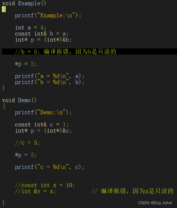 - 与C语言不同,C++中的const不是只读变量