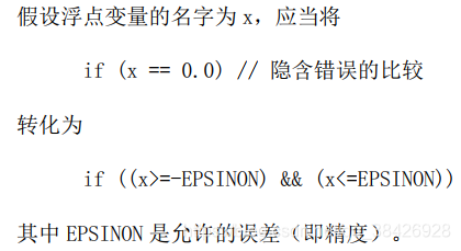 千万要留意,无论是float还是double类型的变量,都有精度限制。所以**一定要避免将浮点变量用“”或“! =”与数字比较**,应该设法转化成“>=” 或“<=” 形式。
